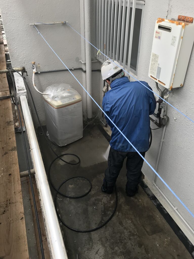 高圧洗浄機でカビや汚れ、劣化した古い塗膜などを落とすことで、