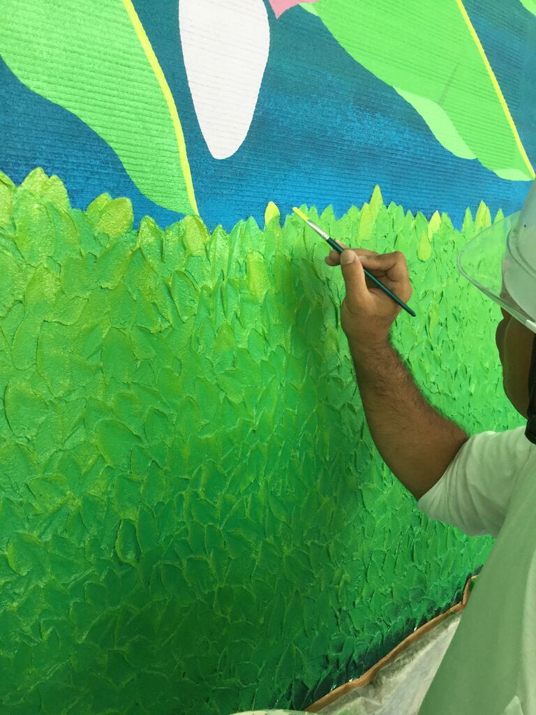 下地に凹凸があるので、基本的にスプレーアートになりますが、