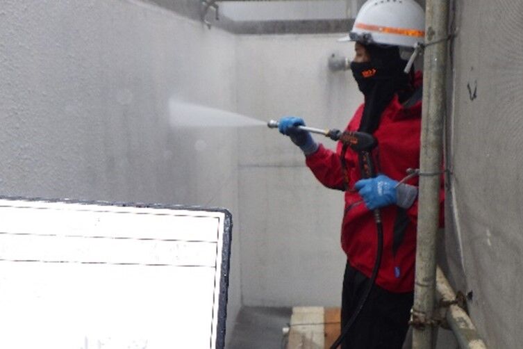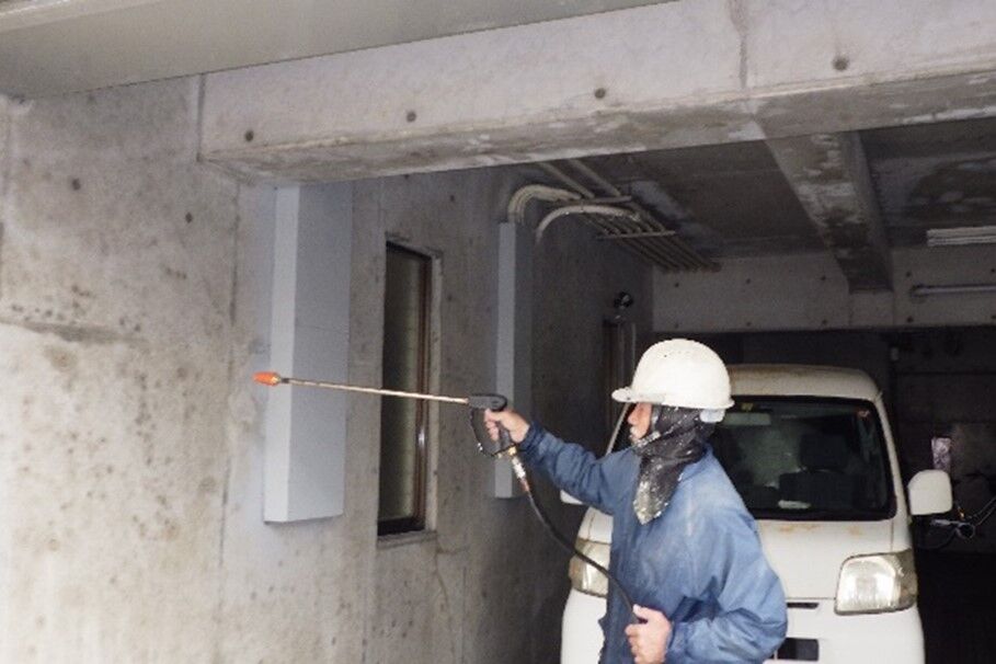 高圧洗浄機でカビや汚れ、劣化した古い塗膜などを落とすことで、