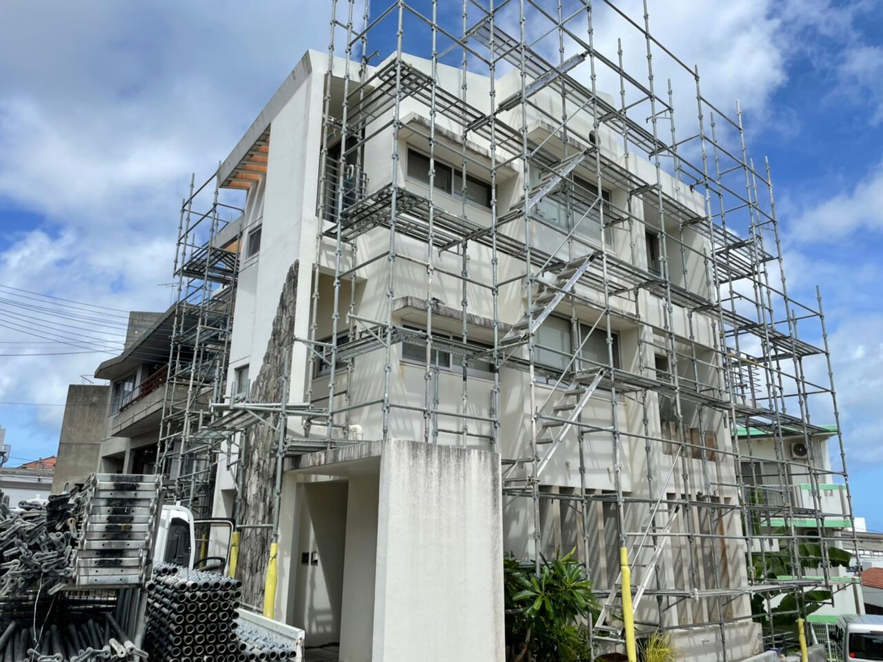 足場専門の業者さんがしっかり組んでくださいます(。-`ω-)!
