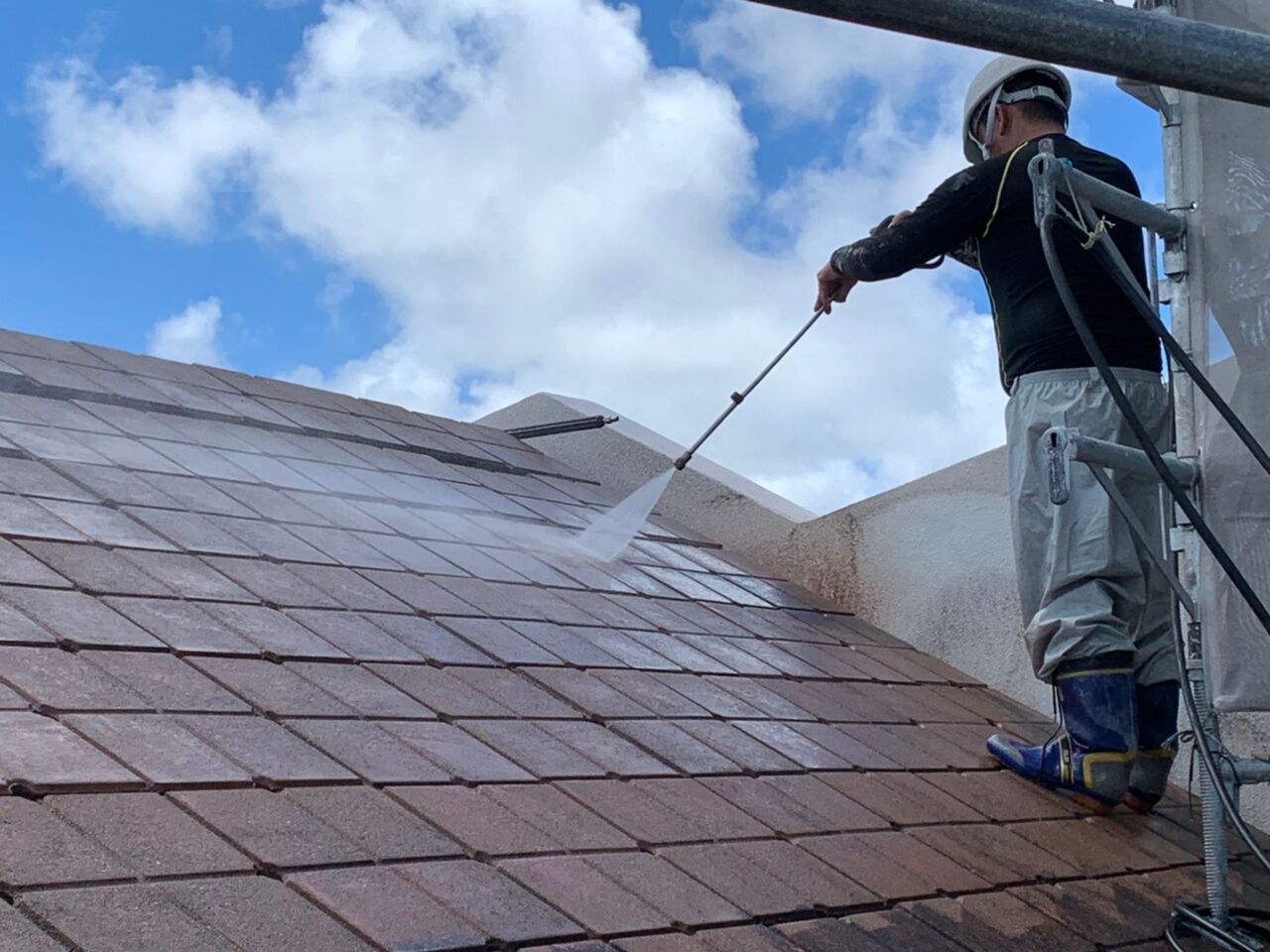 建物全体を高圧洗浄していくのですが、