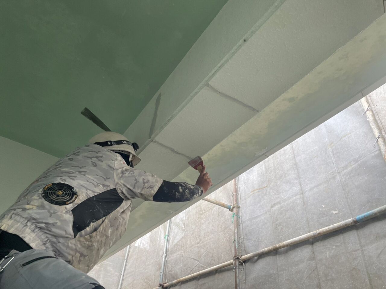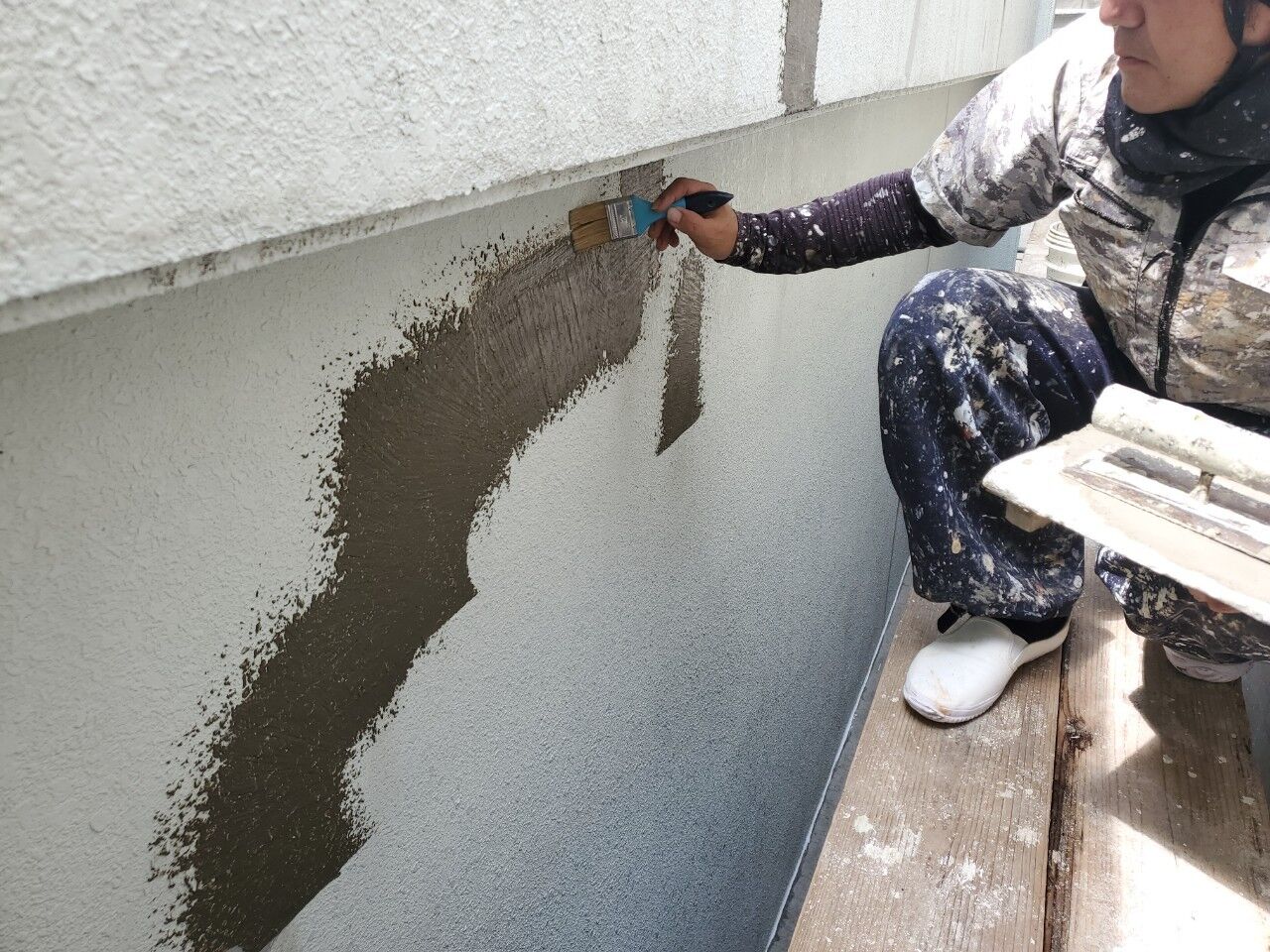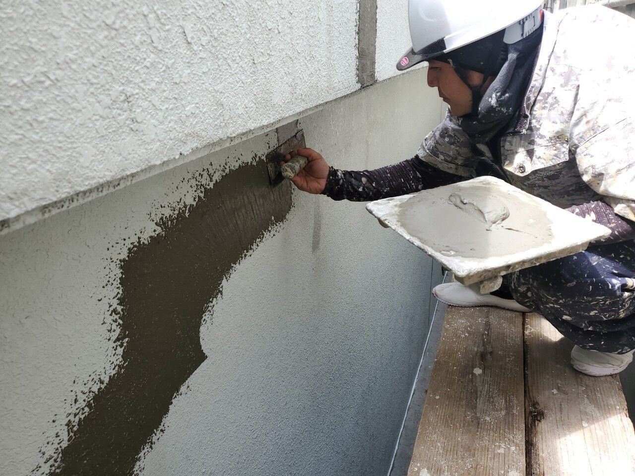 カチオン系セメントで表面を整えて補修箇所も目立たなくします。