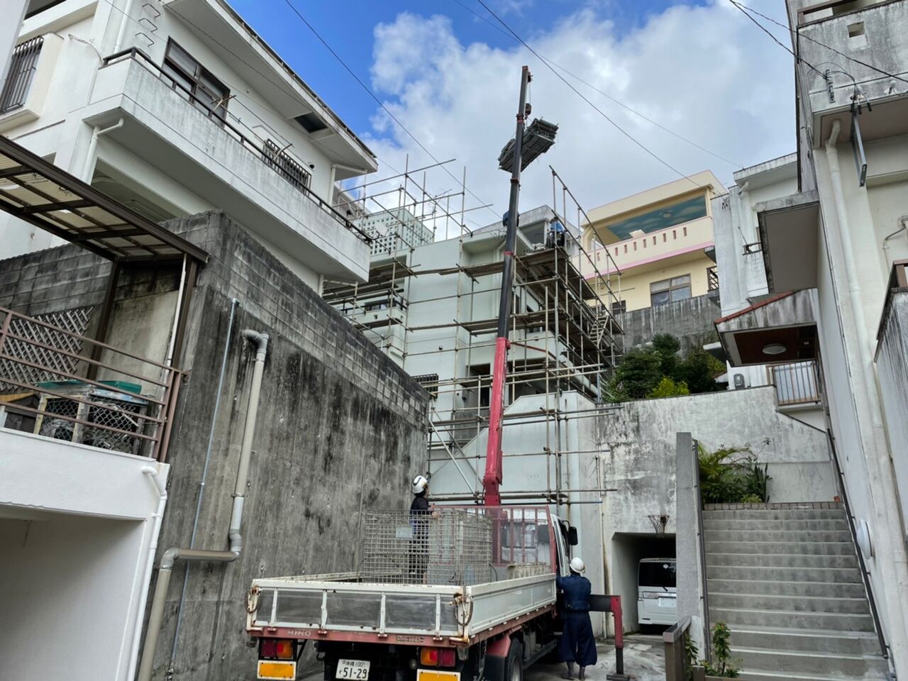 足場専門の業者さんがしっかり組んでくださいます(。-`ω-)!