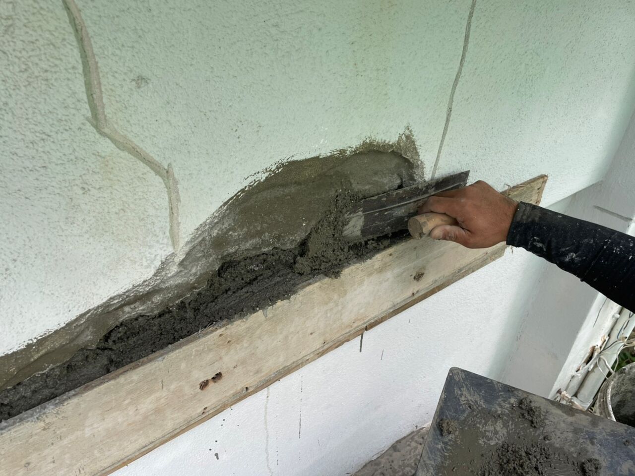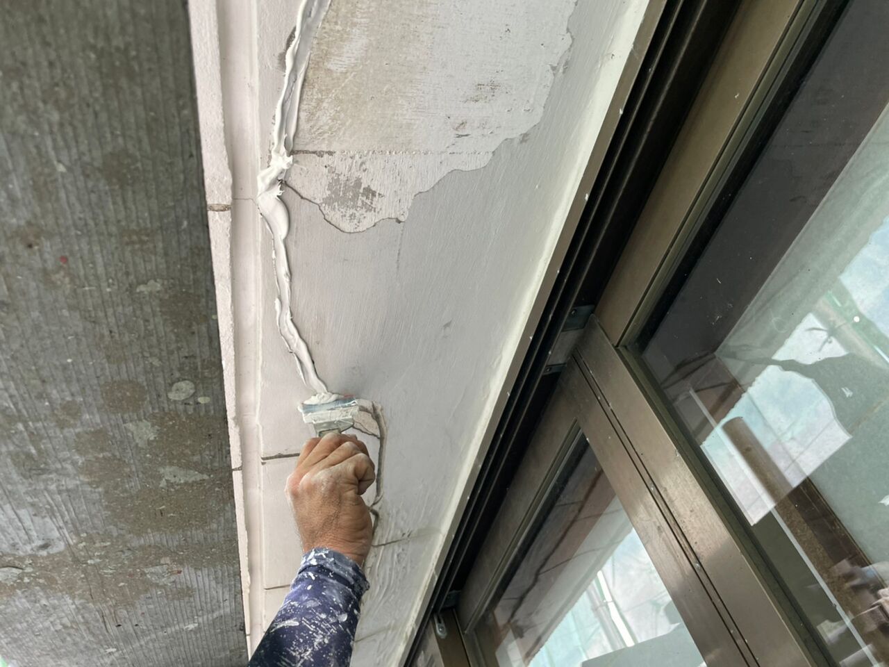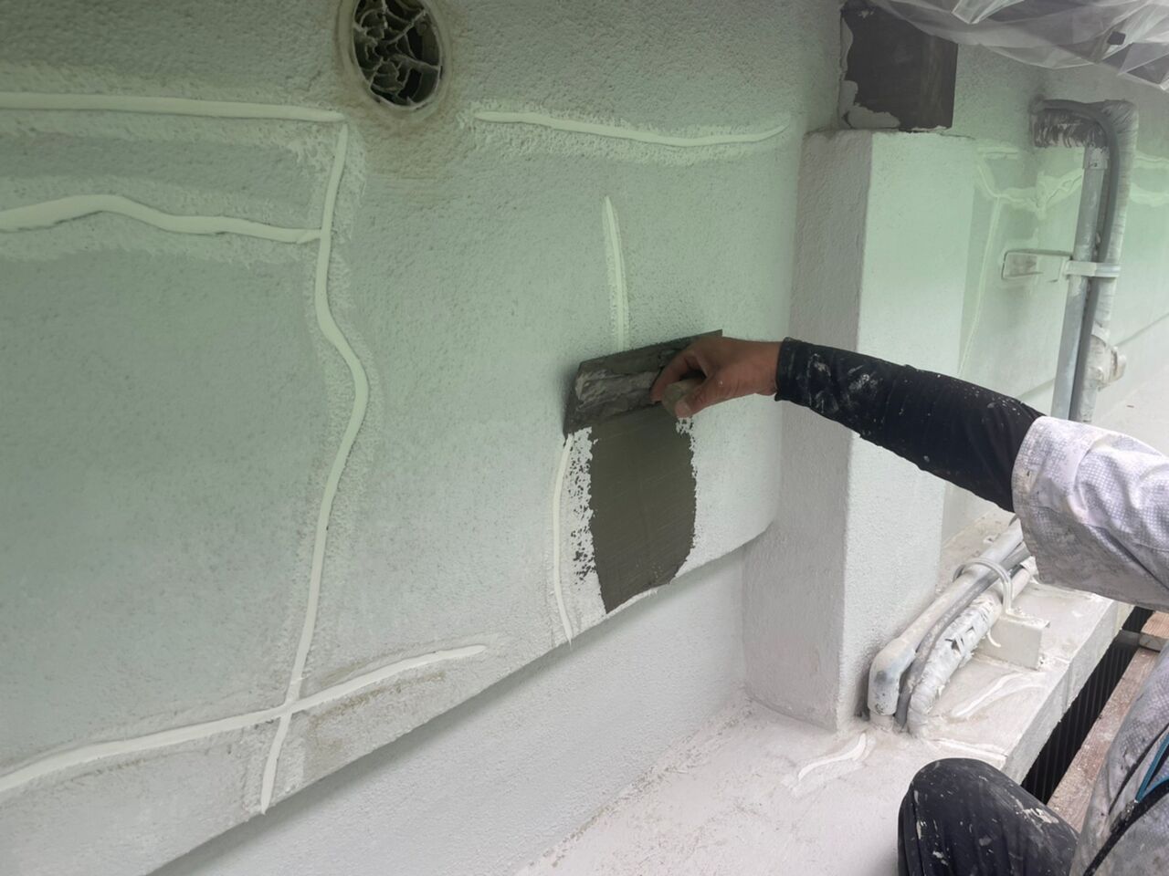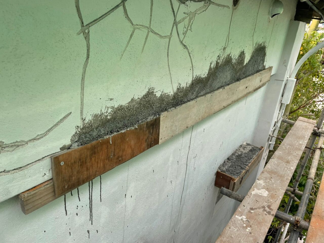 カチオン系セメントで表面を整えて補修箇所も目立たなくします。