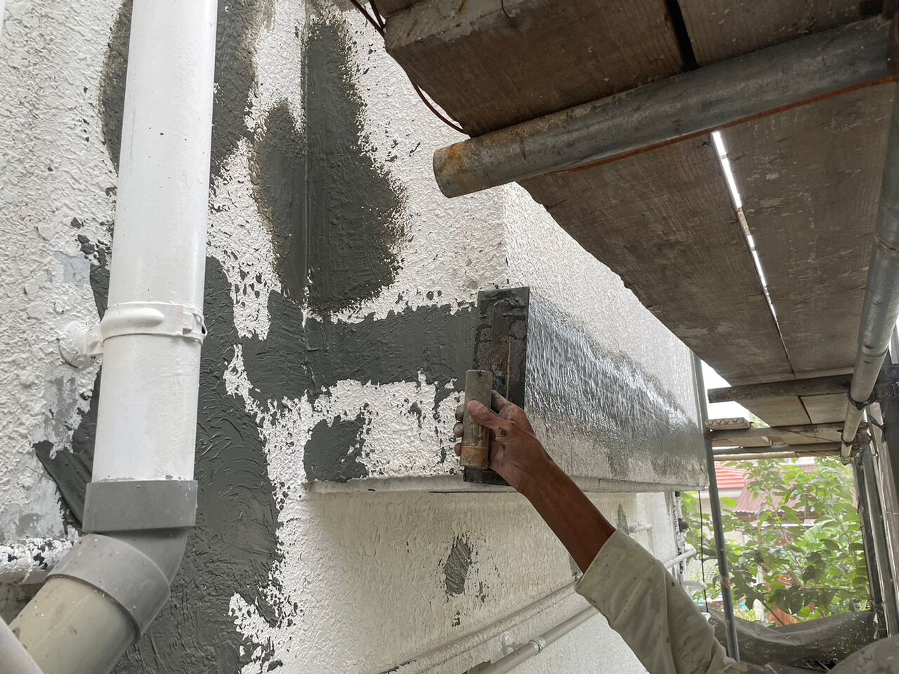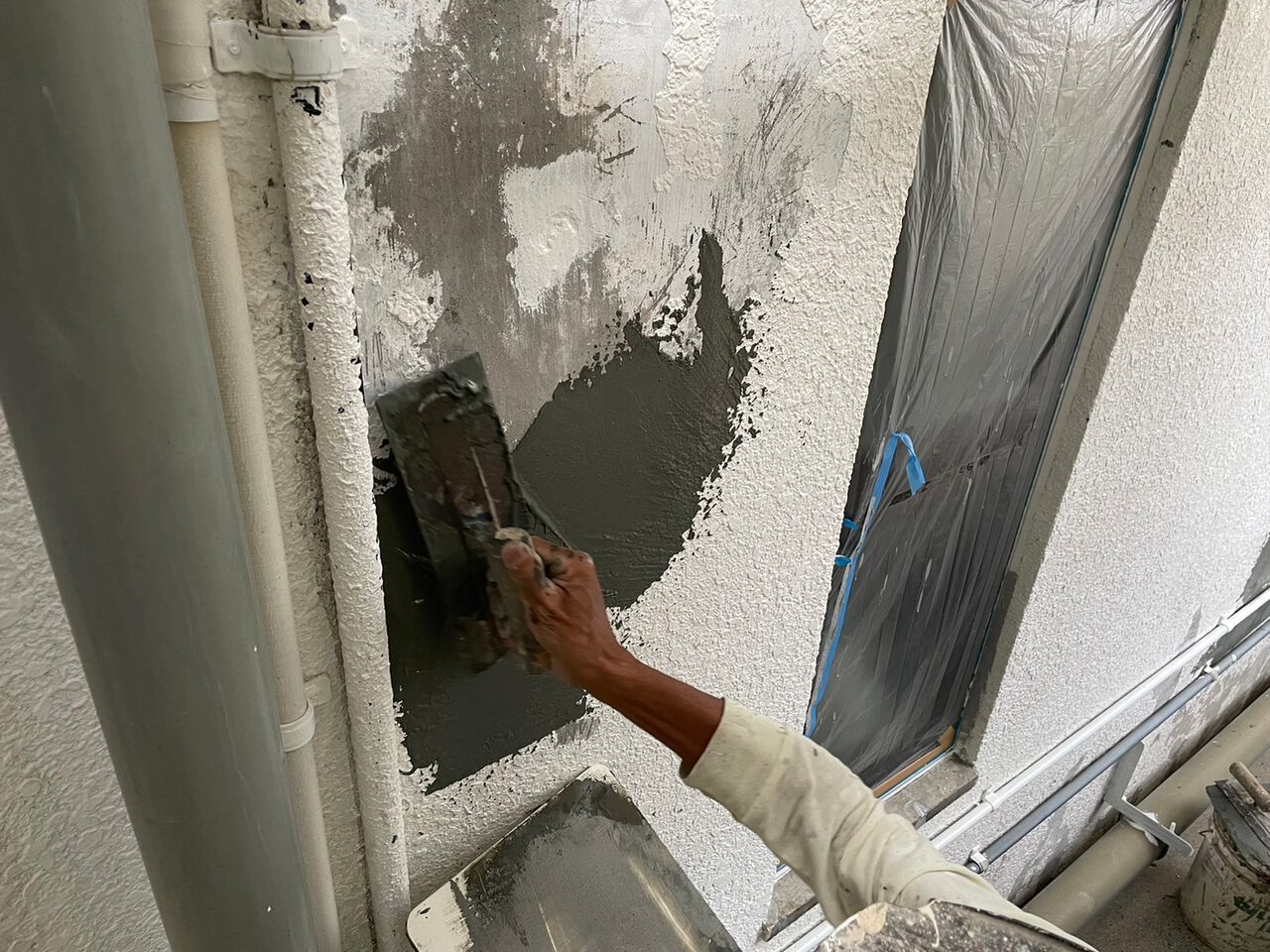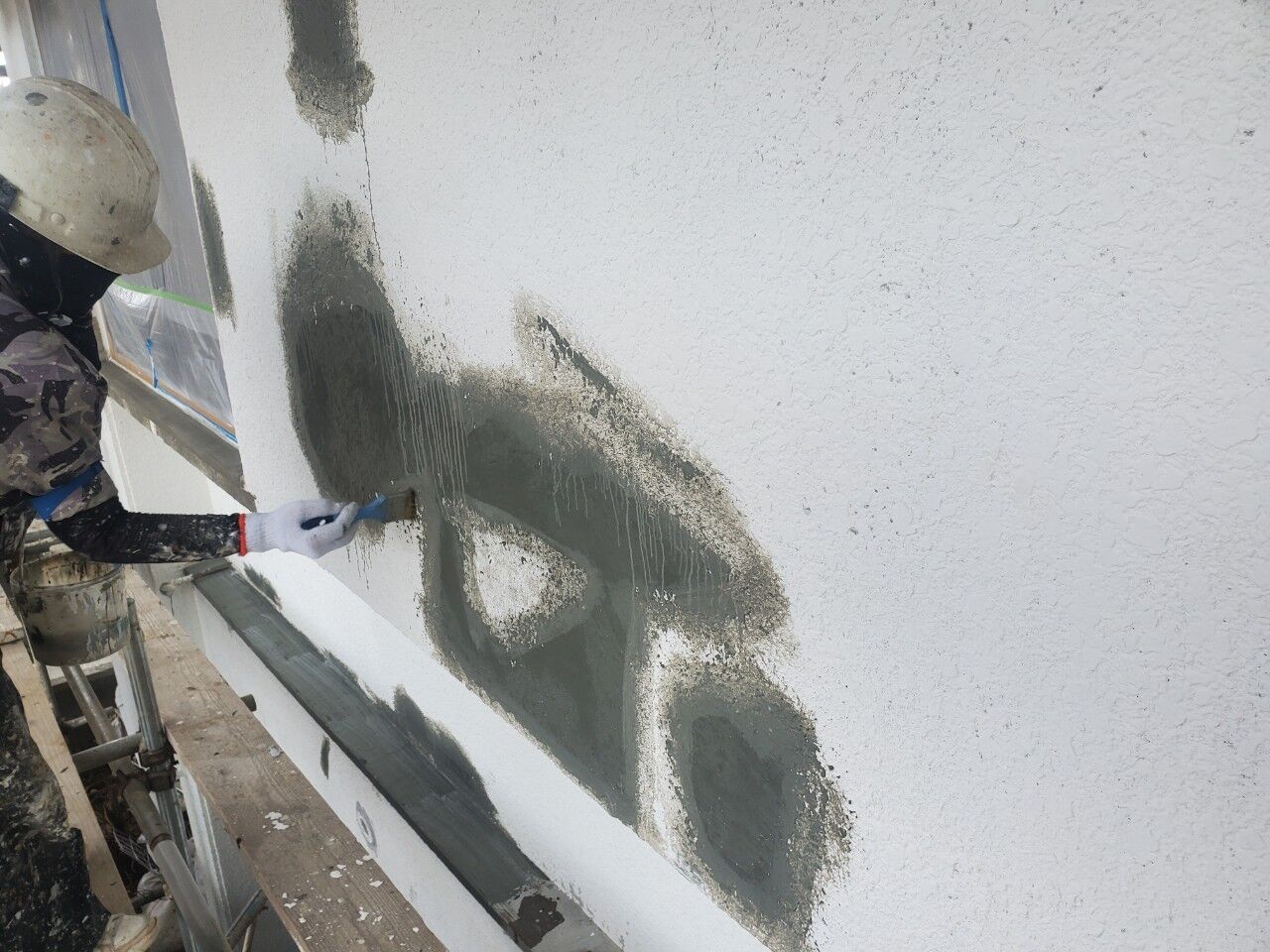 カチオン系セメントで表面を整えて補修箇所も目立たなくします。
