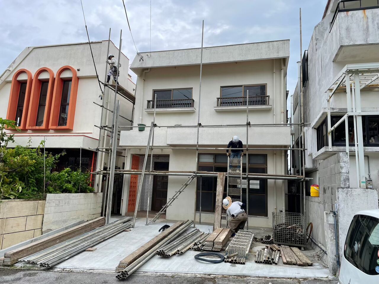 足場専門の業者さんがしっかり組んでくださいます(。-`ω-)!